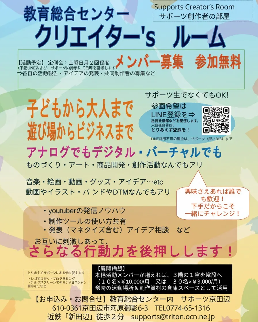 今週土曜11/15 13:30クリエイター’sルーム始めます!